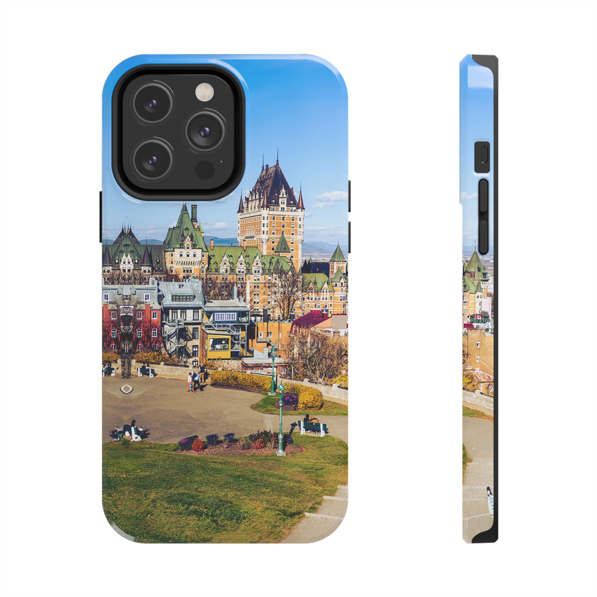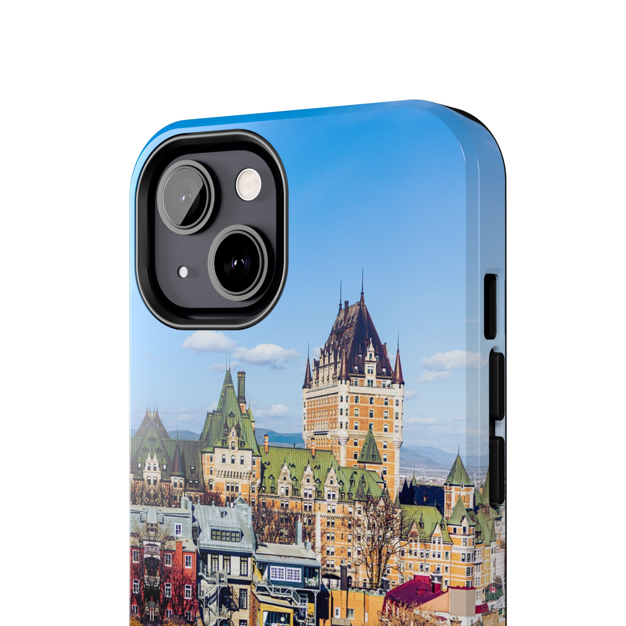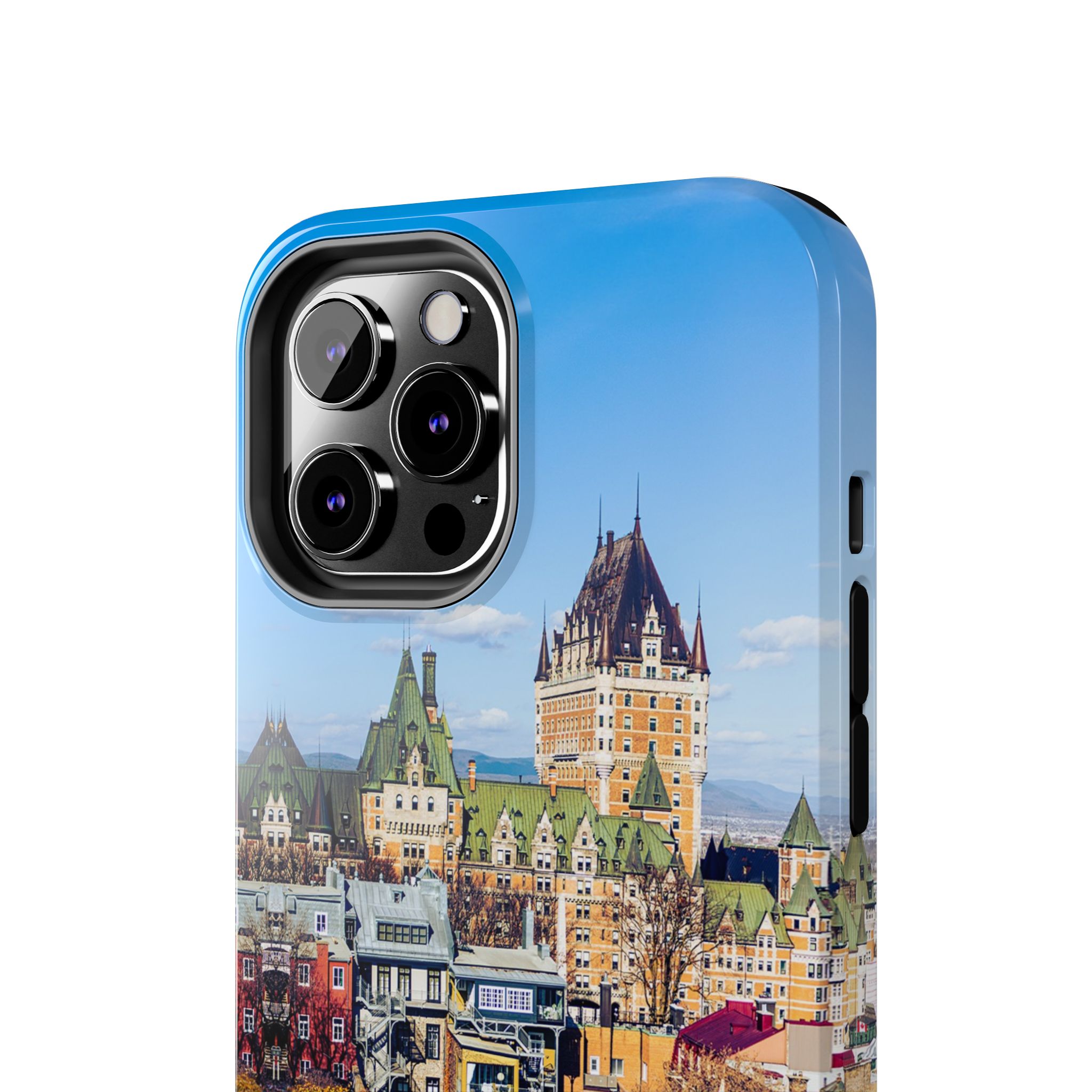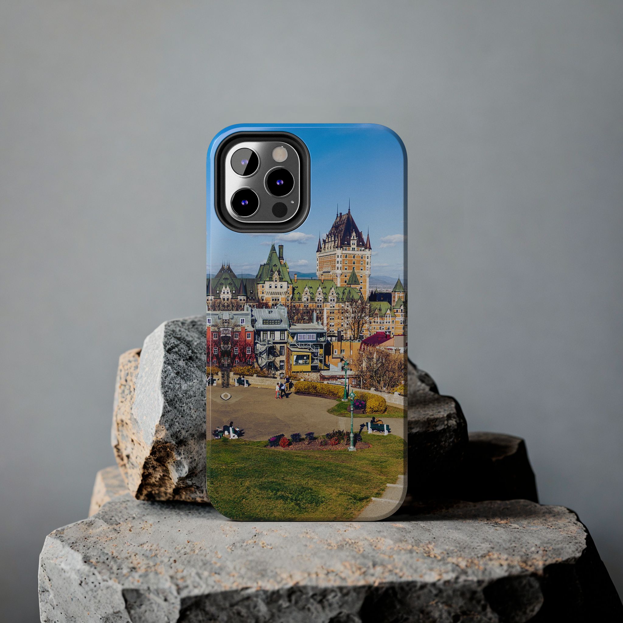 This tough iPhone case features a stunning aerial photograph of the iconic Château Frontenac in Old Quebec. Captured from above, this image showcases the historic charm and architectural beauty of one of Canada’s most famous landmarks. Designed for durability, this case offers robust protection for your phone against drops, bumps, and scratches. The dual-layer construction includes a hard outer shell and a soft inner lining, ensuring your device stays safe while looking stylish. Bring a piece of Old Quebec with you wherever you go with this unique and eye-catching iPhone case. Perfect for lovers of travel, history, and photography.