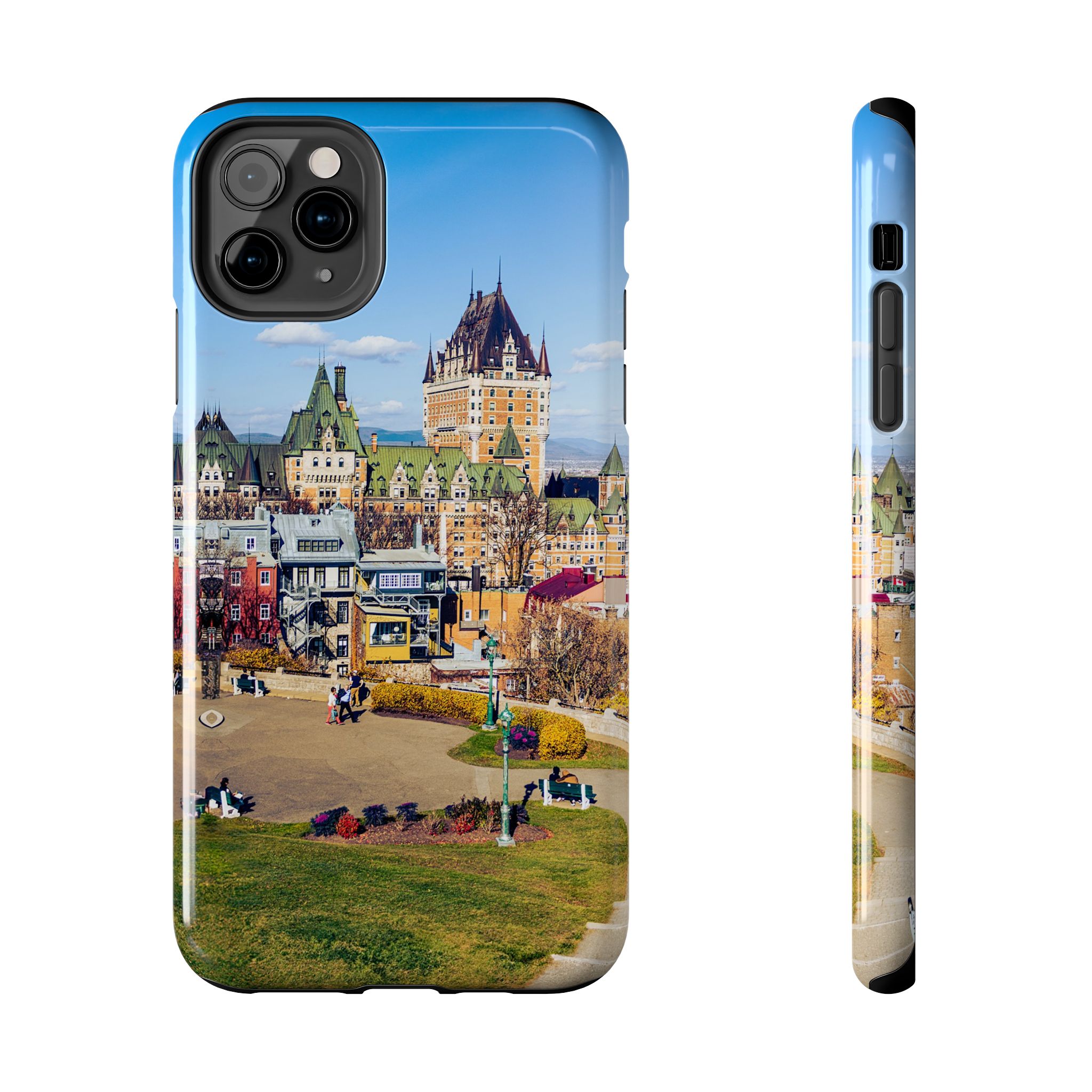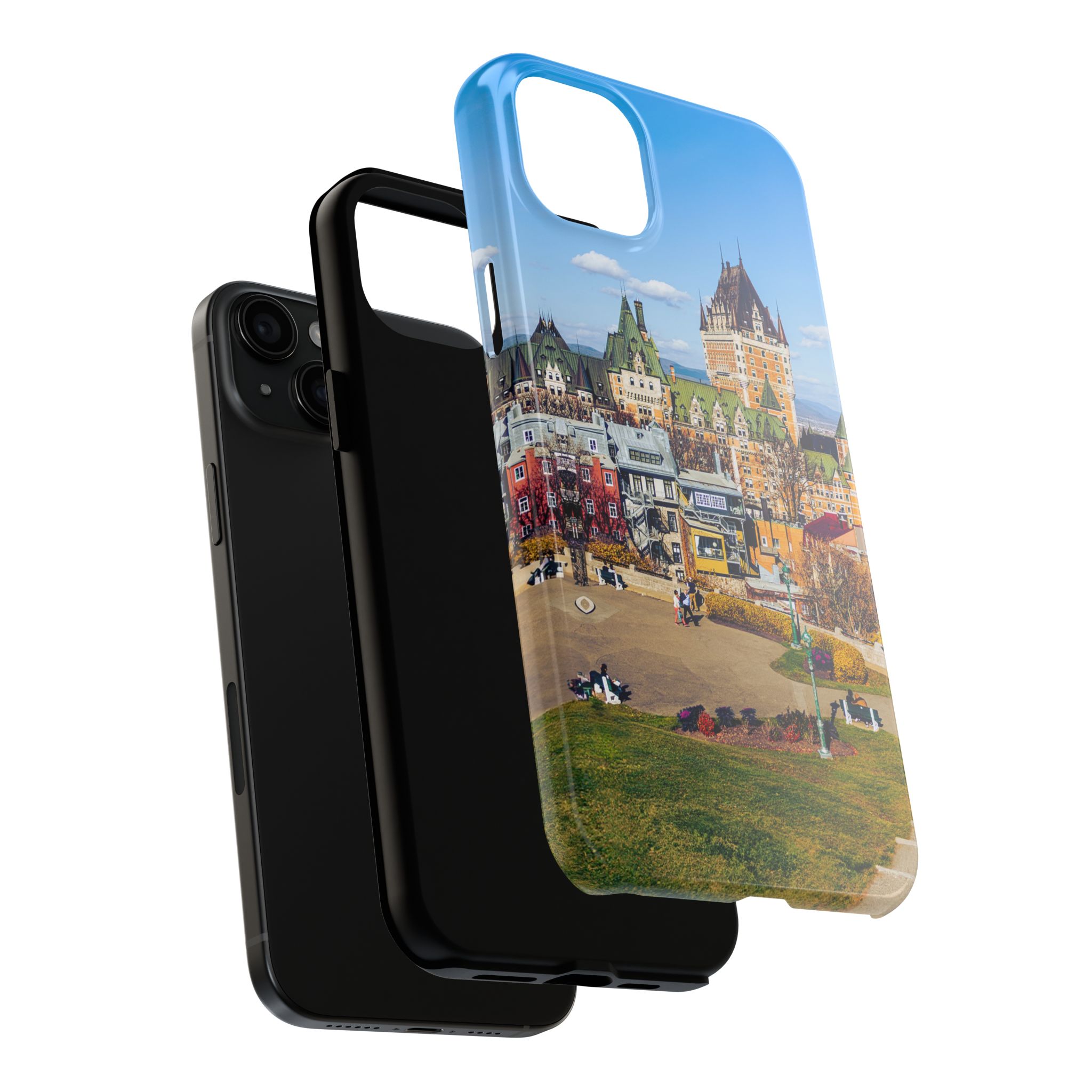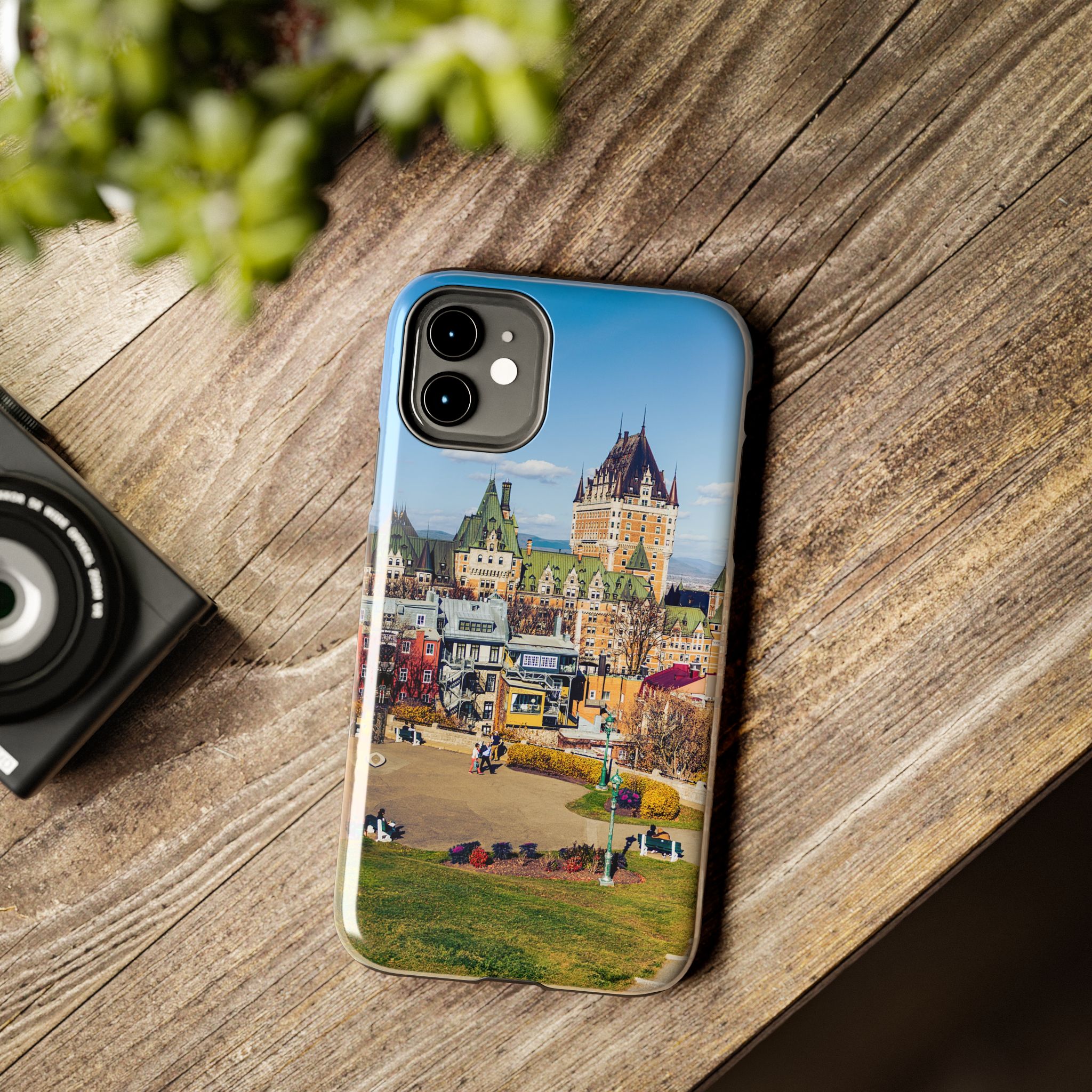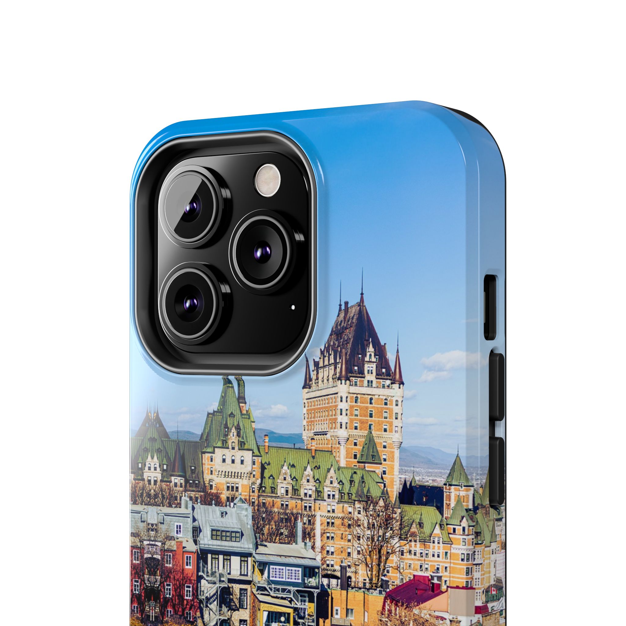 This tough iPhone case features a stunning aerial photograph of the iconic Château Frontenac in Old Quebec. Captured from above, this image showcases the historic charm and architectural beauty of one of Canada’s most famous landmarks. Designed for durability, this case offers robust protection for your phone against drops, bumps, and scratches. The dual-layer construction includes a hard outer shell and a soft inner lining, ensuring your device stays safe while looking stylish. Bring a piece of Old Quebec with you wherever you go with this unique and eye-catching iPhone case. Perfect for lovers of travel, history, and photography.
