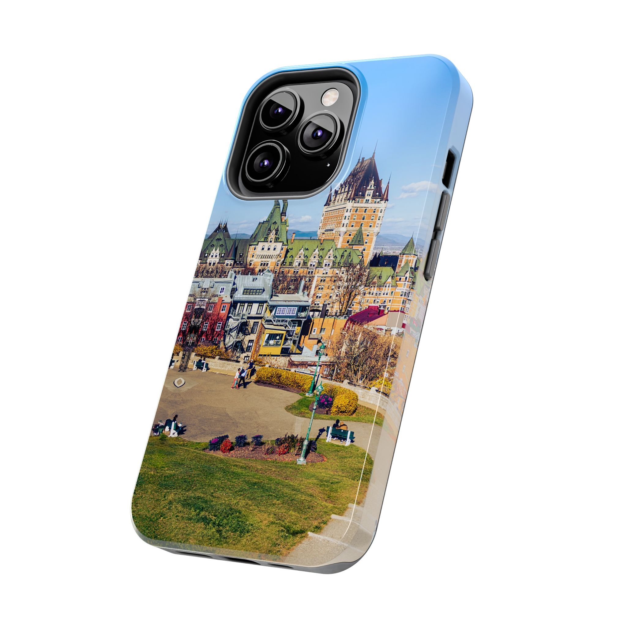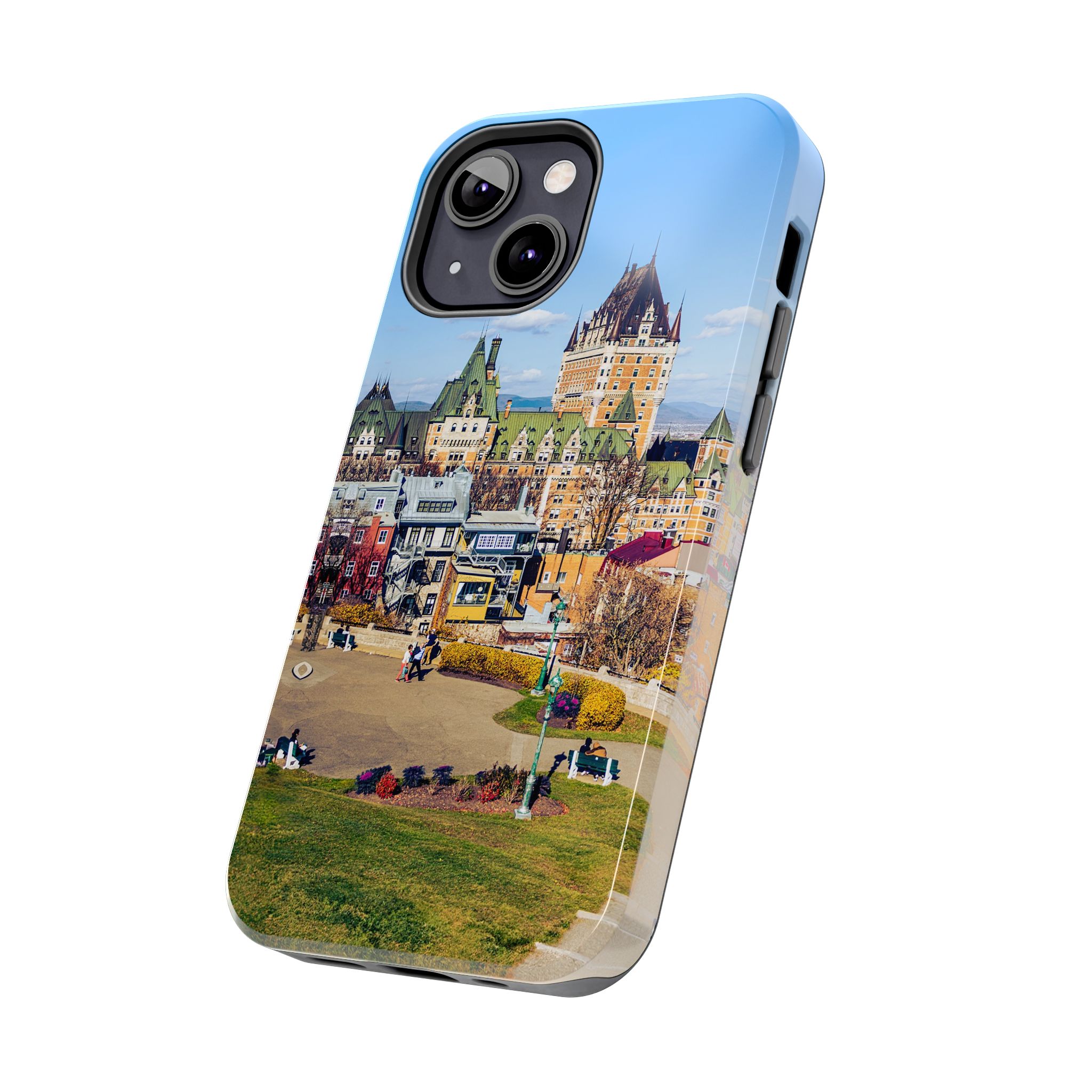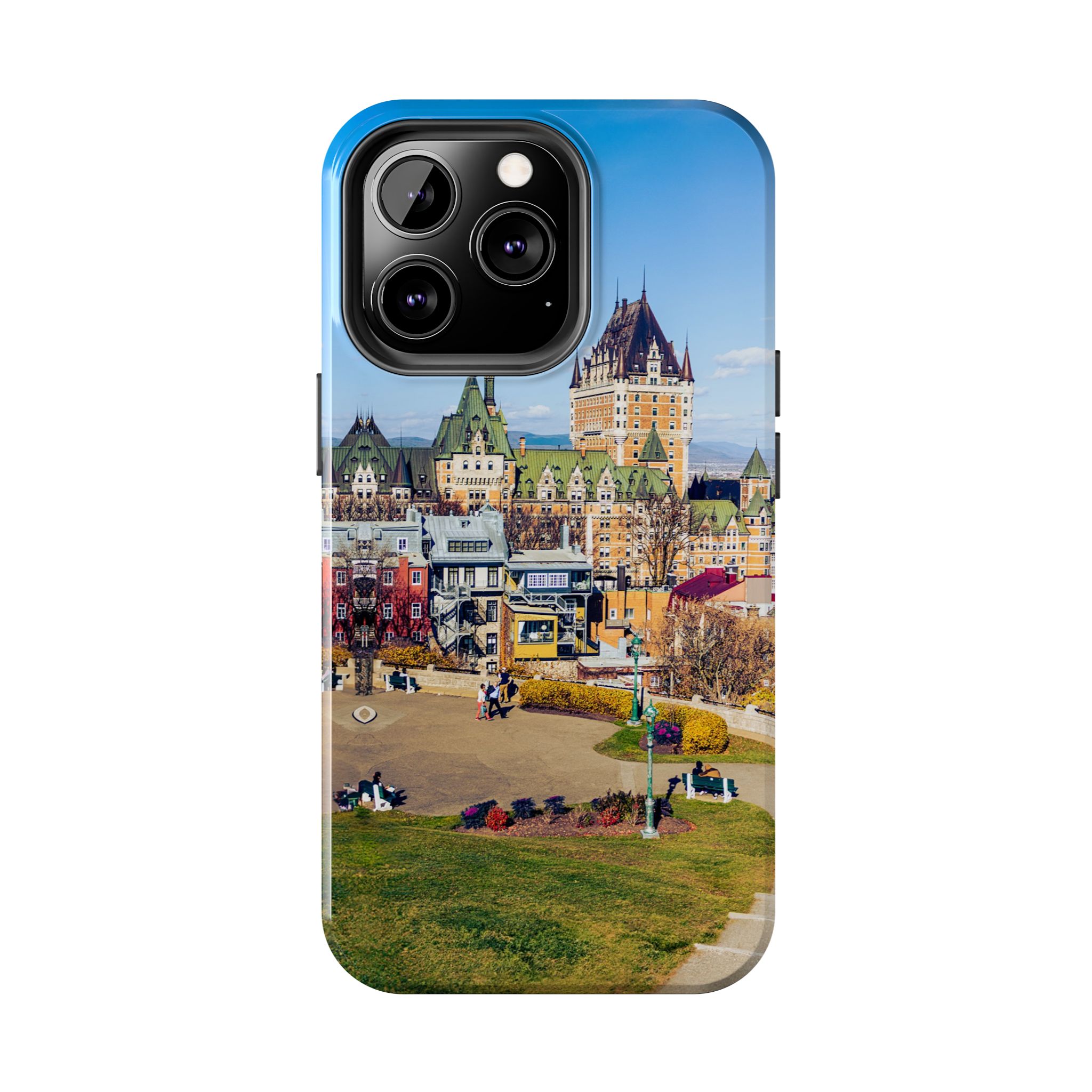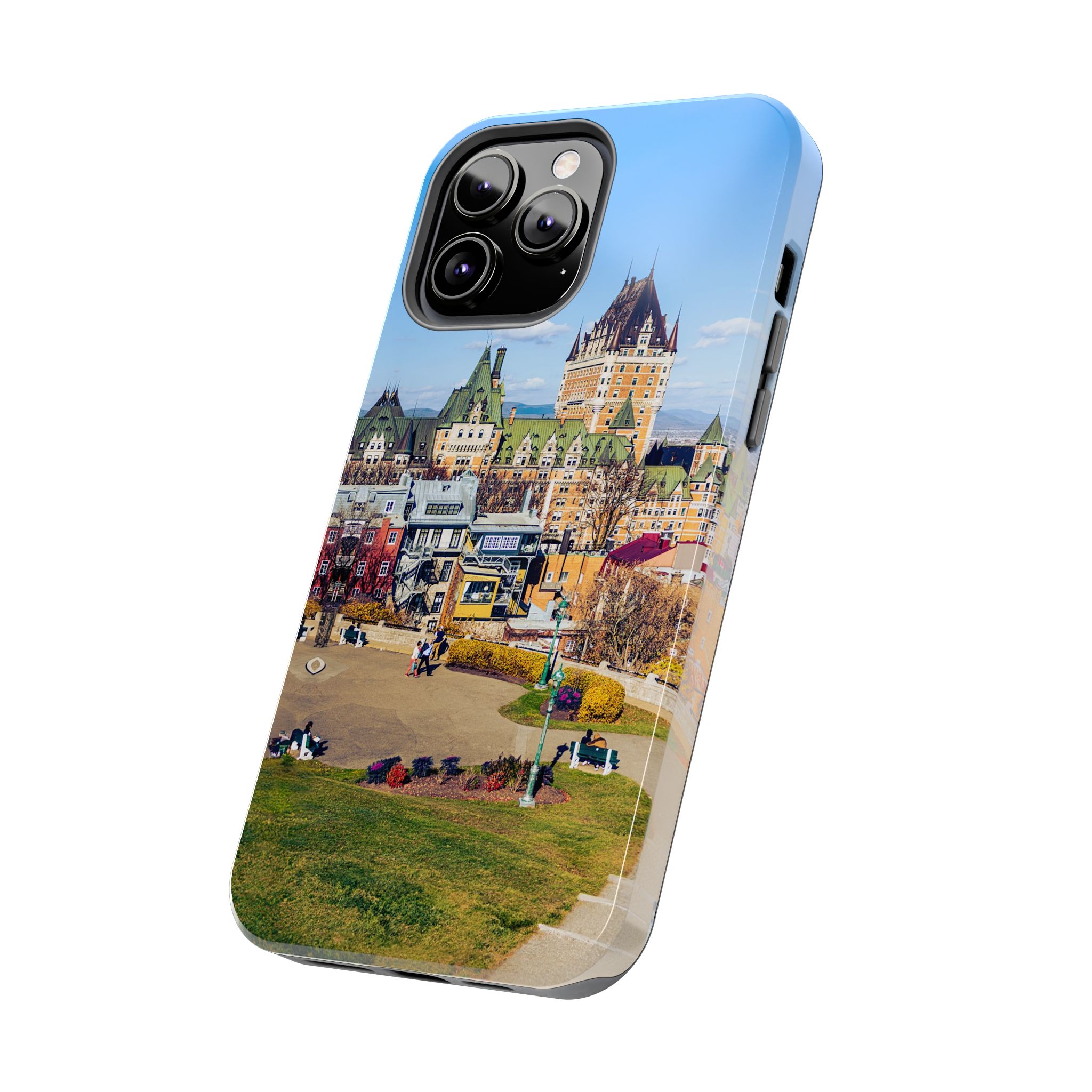 This tough iPhone case features a stunning aerial photograph of the iconic Château Frontenac in Old Quebec. Captured from above, this image showcases the historic charm and architectural beauty of one of Canada’s most famous landmarks. Designed for durability, this case offers robust protection for your phone against drops, bumps, and scratches. The dual-layer construction includes a hard outer shell and a soft inner lining, ensuring your device stays safe while looking stylish. Bring a piece of Old Quebec with you wherever you go with this unique and eye-catching iPhone case. Perfect for lovers of travel, history, and photography.