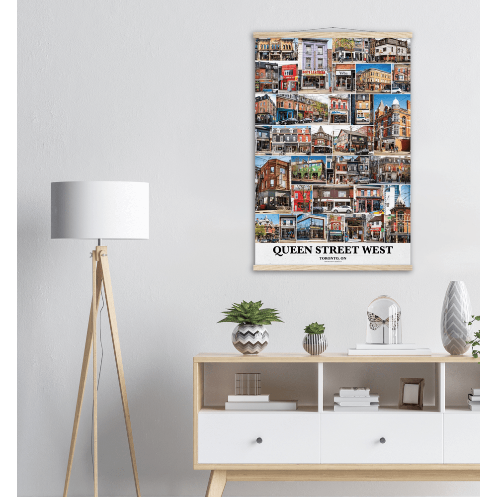 A high-quality poster and a beautiful hanger. Each hanger includes four wooden sticks, two that clamp the top of the print and two that clamp the bottom, and cotton ropes that match the hanger color. Strong magnets securely grip the artwork, while easily allowing you to change the art whenever is needed.